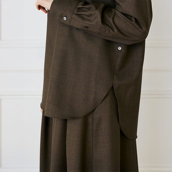 長めの着丈とラウンドヘムがヒップ周りを自然にカバー。