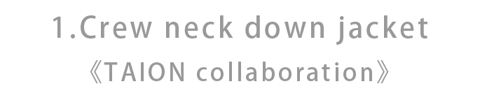 TAIONの定番クルーネックダウンをWarmd Art素材に置き換えてコラボレーションしたダウンジャケット。